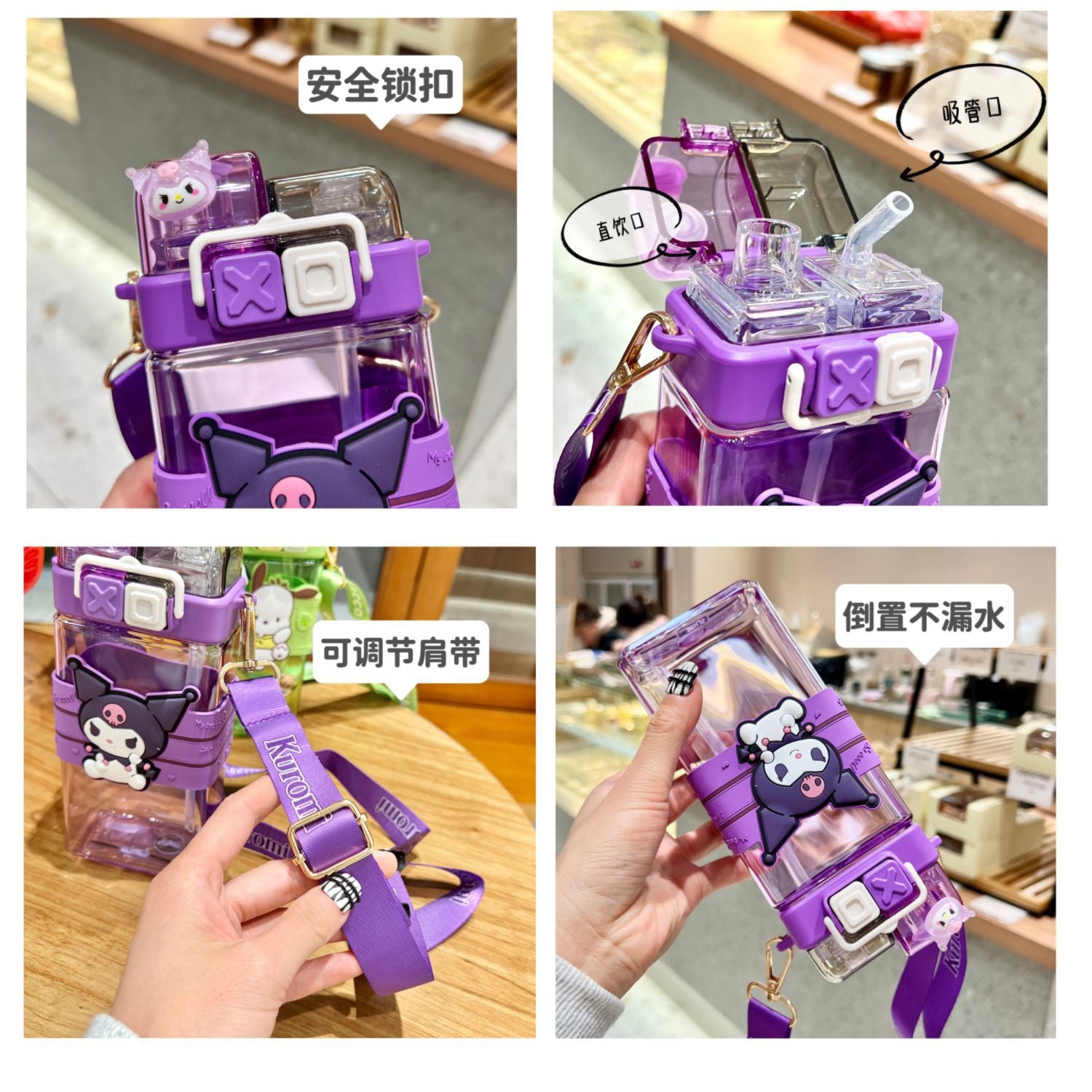 The Premium Sanrio Cartoon Water Bottle combines adorable design with practical functionality. Featuring beloved Sanrio characters such as Melody, Kuromi, Cinnamoroll, and Onpompurin, this 520ML bottle offers a double drink cup for carrying two beverages at once. Its leak-proof, lightweight, and durable design makes it perfect for students, Sanrio fans, or anyone who wants to stay hydrated in style. Whether you’re at school, in the gym, or on an outdoor adventure, this cute and practical water bottle is a delightful companion for everyday use.