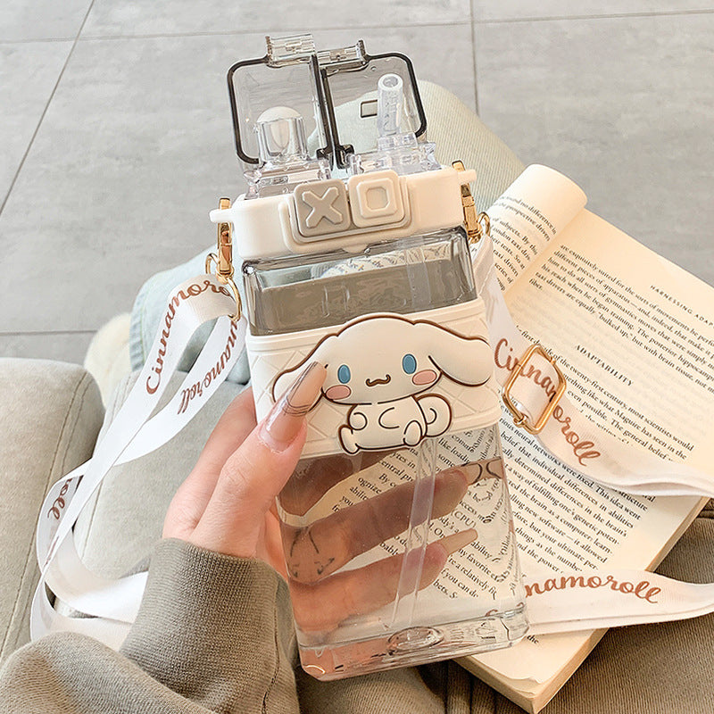 Premium Sanrio Cartoon Water Bottle – 520ML Double Drink Cup Featuring Melody, Kuromi, Cinnamoroll & Onpompurin